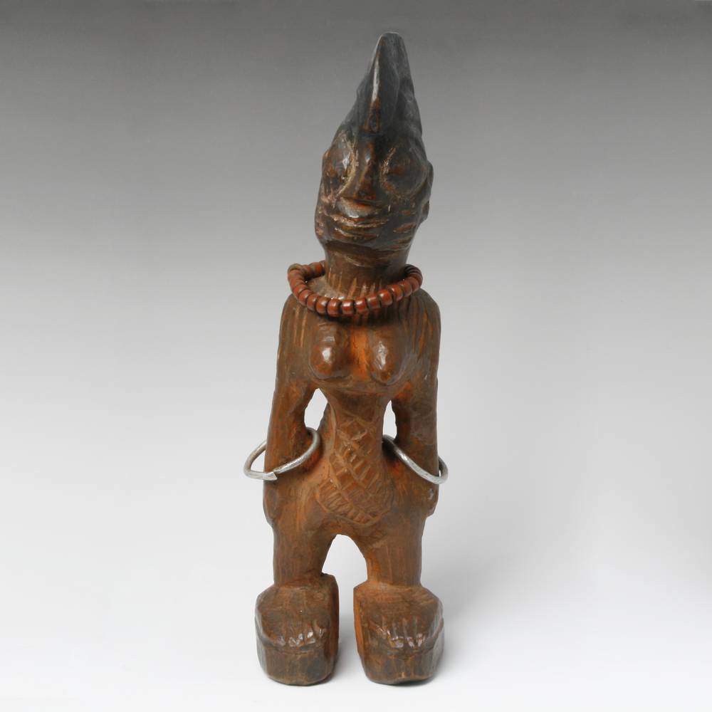 PAINTED & CARVED WOOD WITH BEADS AND SILVER