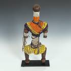 CARVED WOOD WITH GLASS BEADS, & COWRIE SHELLS
