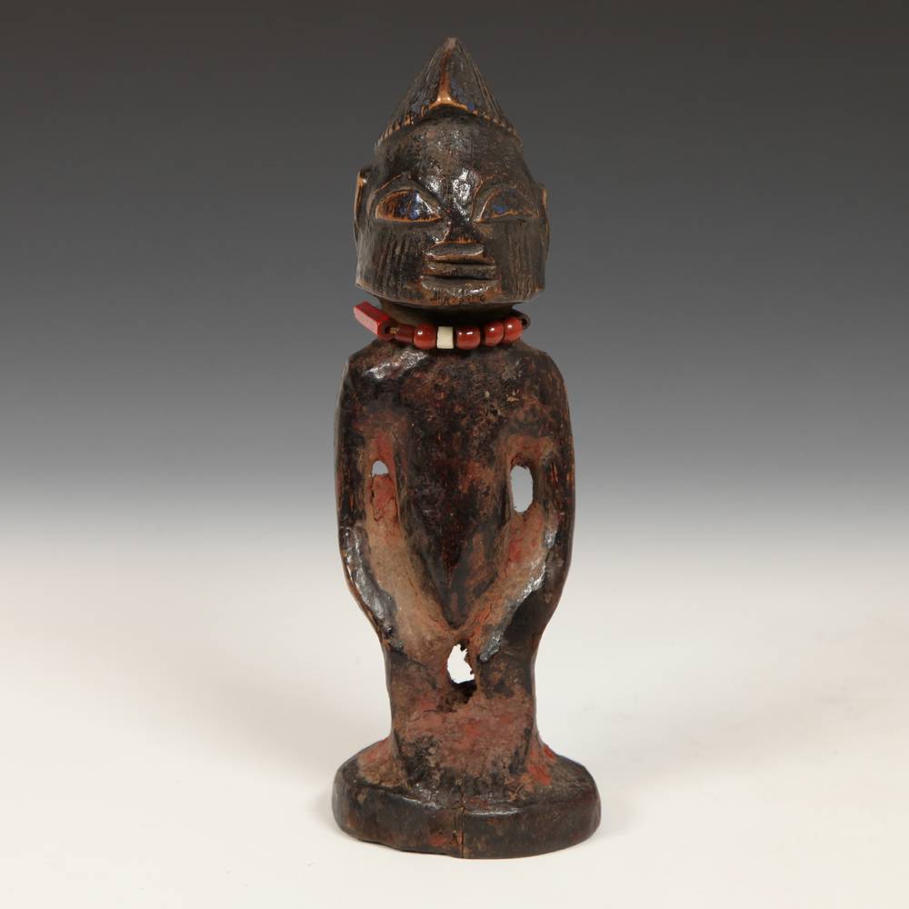 PAINTED & CARVED WOOD WITH GLASS & PLASTIC BEADS