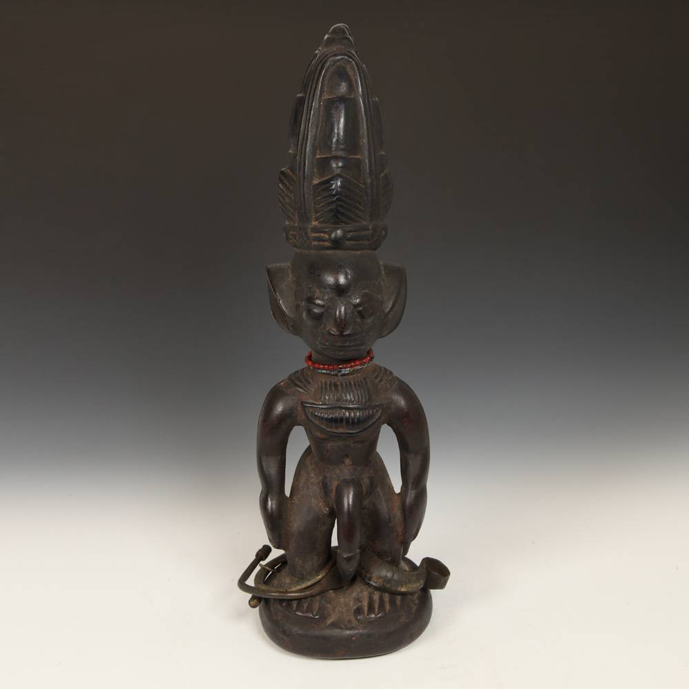 CARVED WOOD WITH GLASS BEADS & MINIATURE CURRENCY