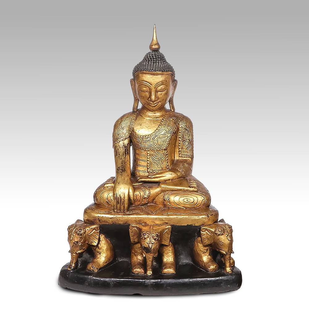 Seated Buddha on Elephant Base with Bhumisparsa Mudra