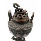 Lidded Censer Depicting Demon Oni Holding Top Burner on Floral base