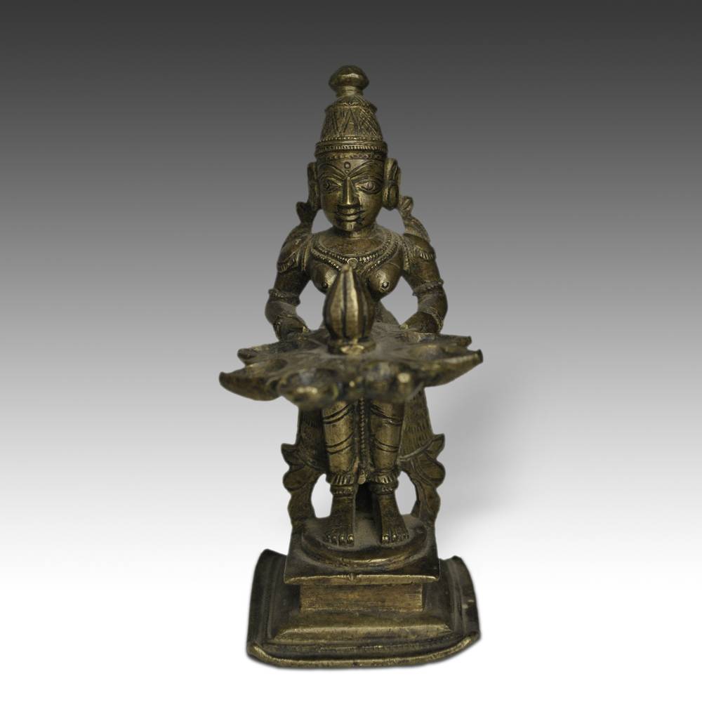 Oil Lamp with Standing Female Figure
