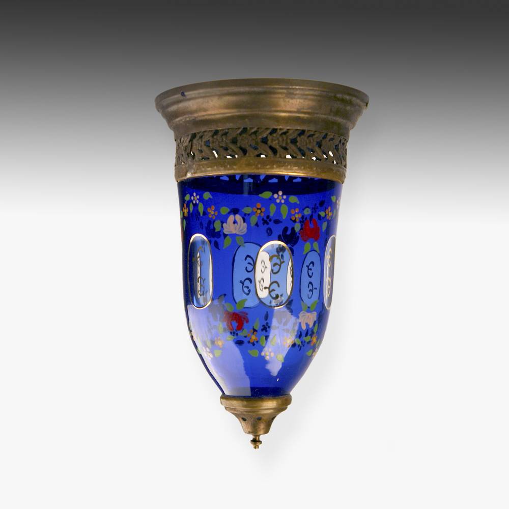 These lamps are crafted from antique Czech and Bohemian hand-blown glass and crystal stemware. Turkish artisans then designed and fabricated custom brass fittings to highlight the form and color of each.