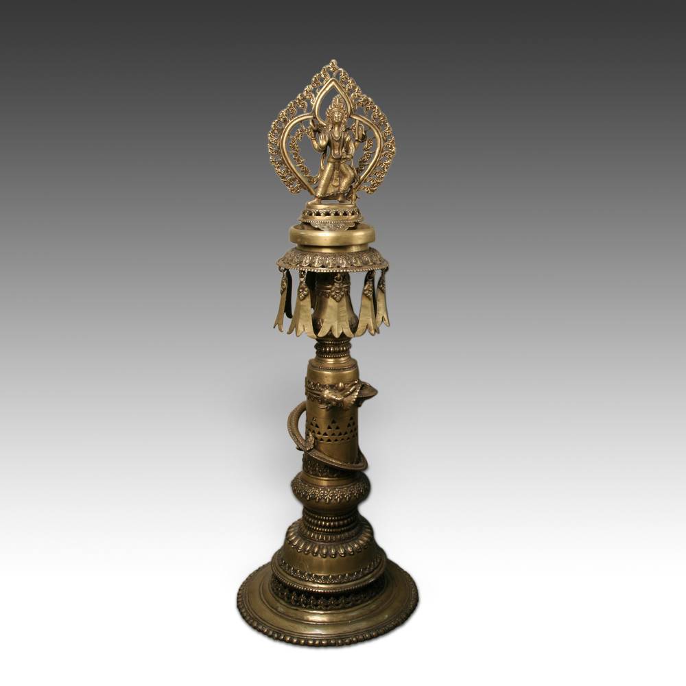 Oil Lamp depicting Murugan, brother of Ganesh
