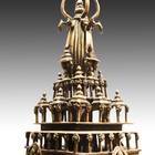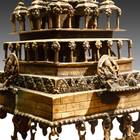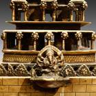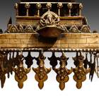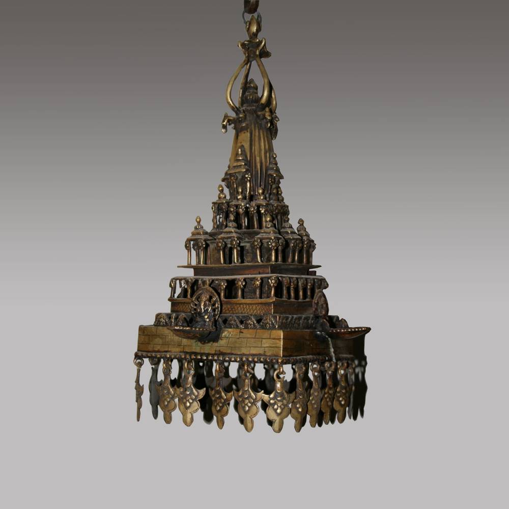 Hanging Oil Lamp Depicting Temple, with Pendants