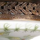 PAINTED EUROPEAN GLASS & BRASS 6'' DIA x 4.25'' H