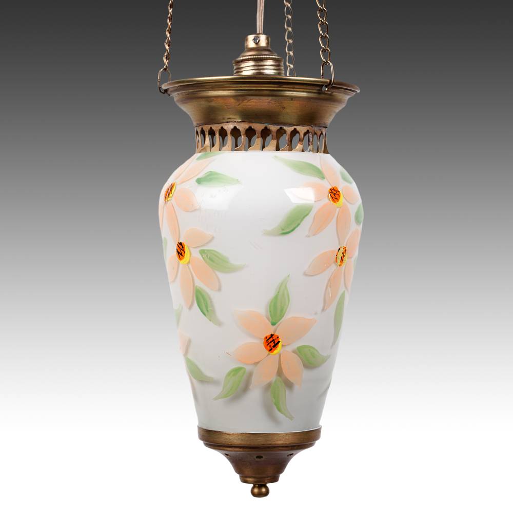 PAINTED EUROPEAN GLASS & BRASS 3.75'' DIA x 7'' H