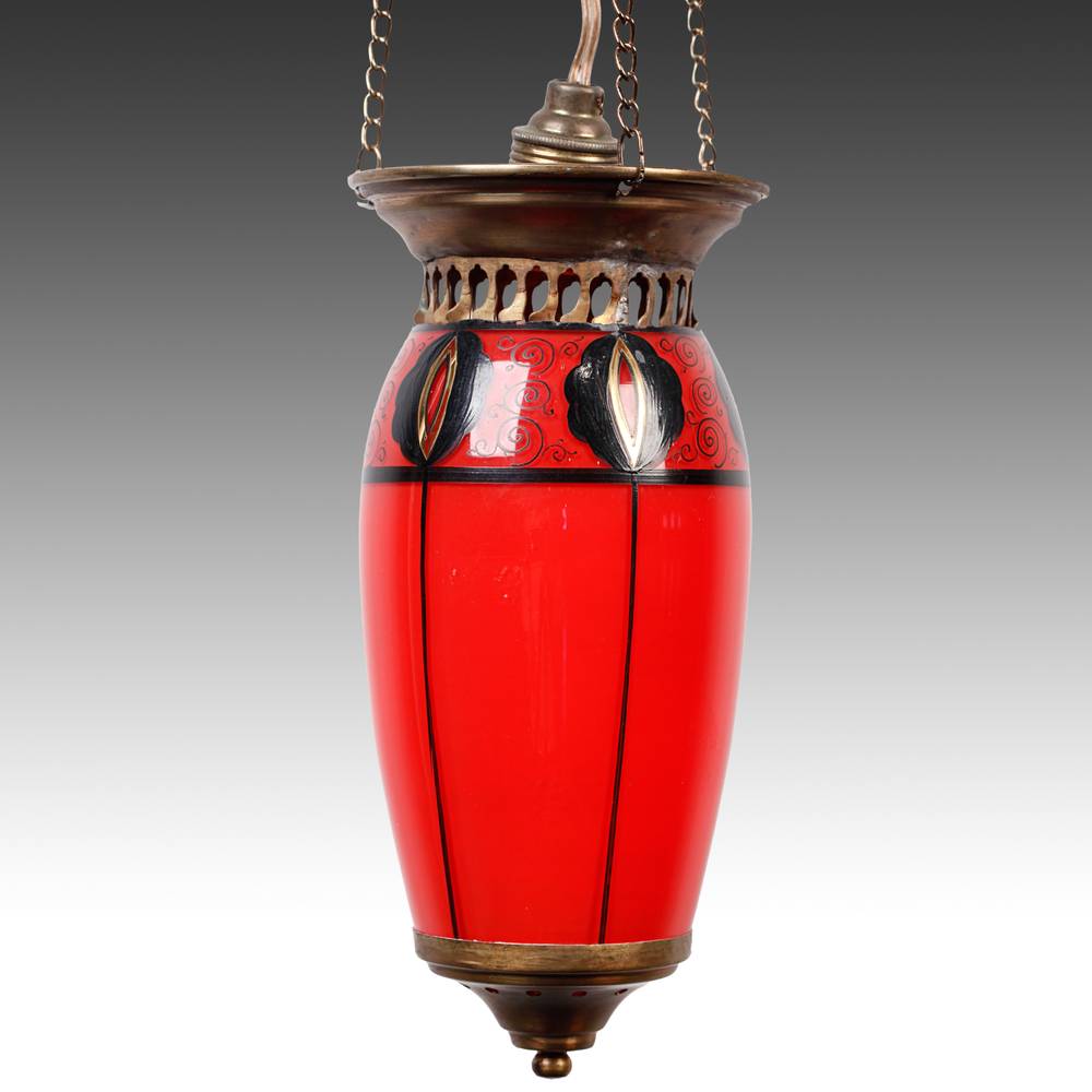 PAINTED EUROPEAN GLASS & BRASS 3.5'' DIA x 7.5'' H