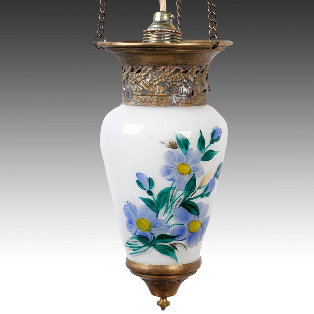 PAINTED EUROPEAN GLASS & BRASS 3.5'' DIA x 6.75'' H
