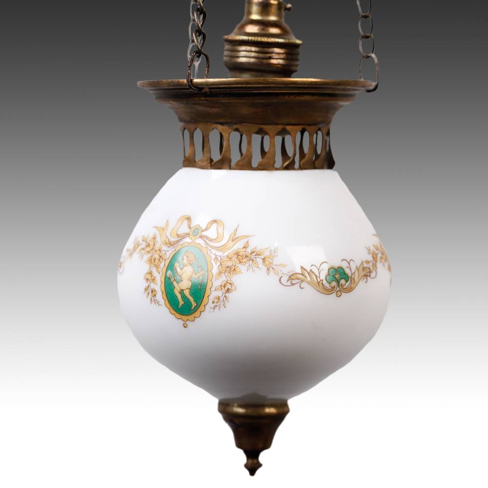 Hanging Lamp with Cherub Motif, Electrified