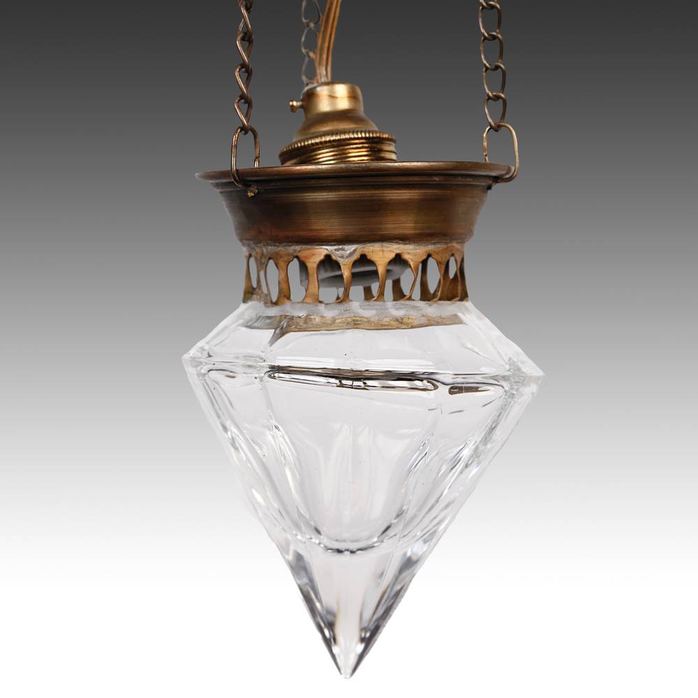 These lamps are crafted from antique Czech and Bohemian hand-blown glass and crystal stemware. Turkish artisans then designed and fabricated custom brass fittings to highlight the form and color of each.
