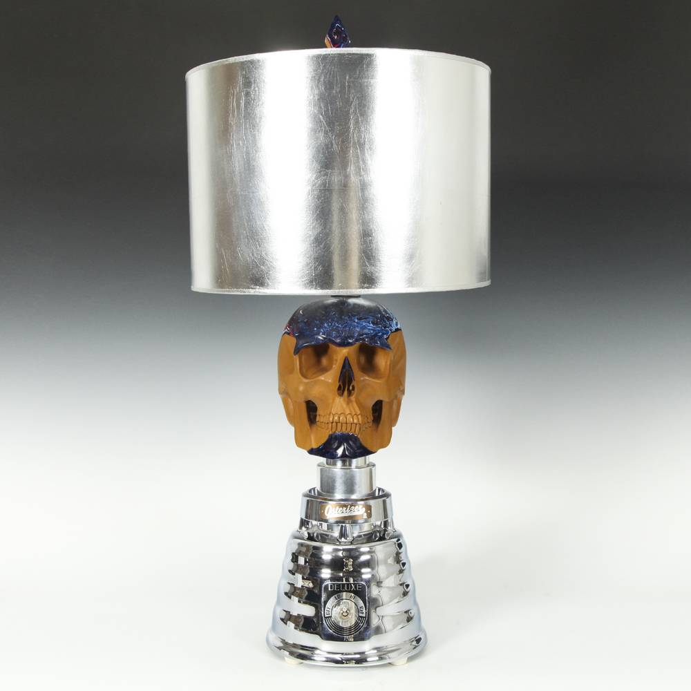 CARVED BOWLING BALL ON VINTAGE OSTERIZER BASE