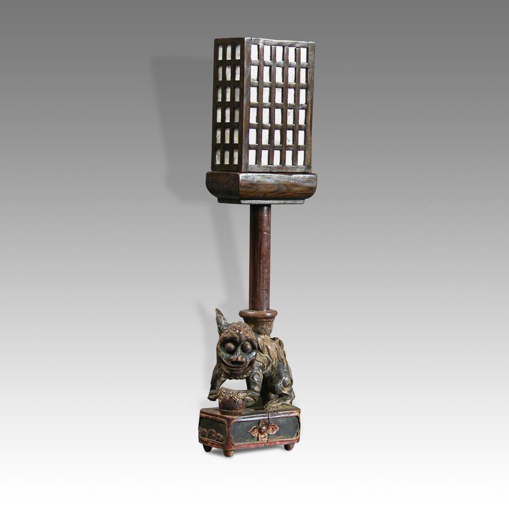 Standing Lamp with Lattice & Foo Lion Motif