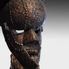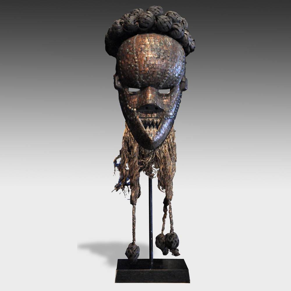COPPER OVER CARVED WOOD WITH RAFFIA & PLANT FIBER