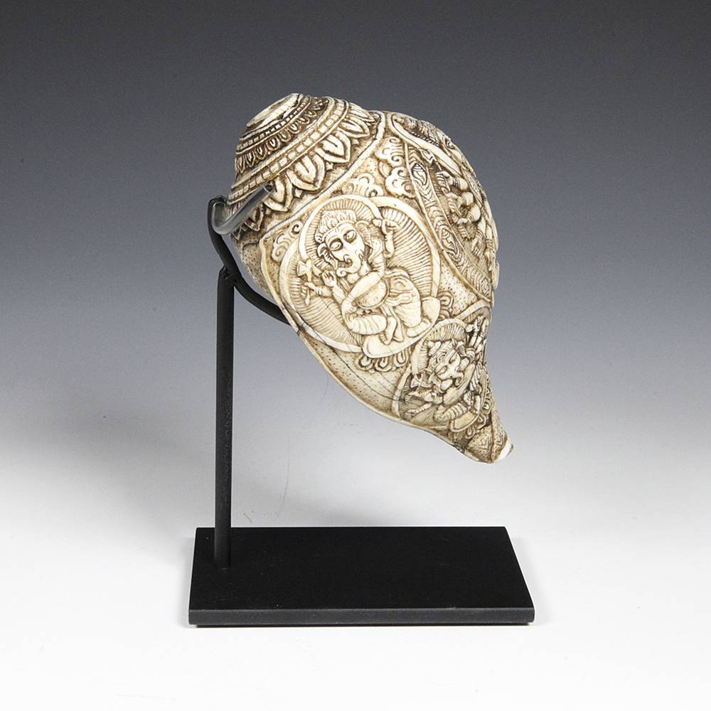 Sankha or Conch Shell Trumpet depicting Ganesh - Left Hand