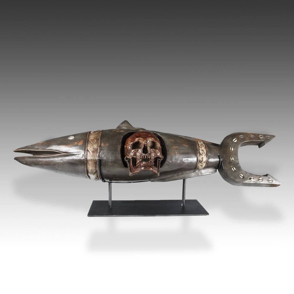 TROPHY SKULL MUSEUM MODEL OF SKULL IN FISH, BASED