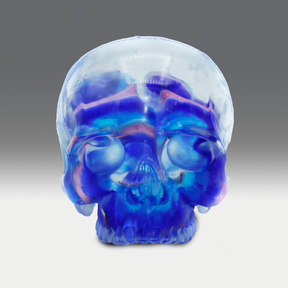 Re-Cut Paper Weight Skull With Yellow and Blue Flower