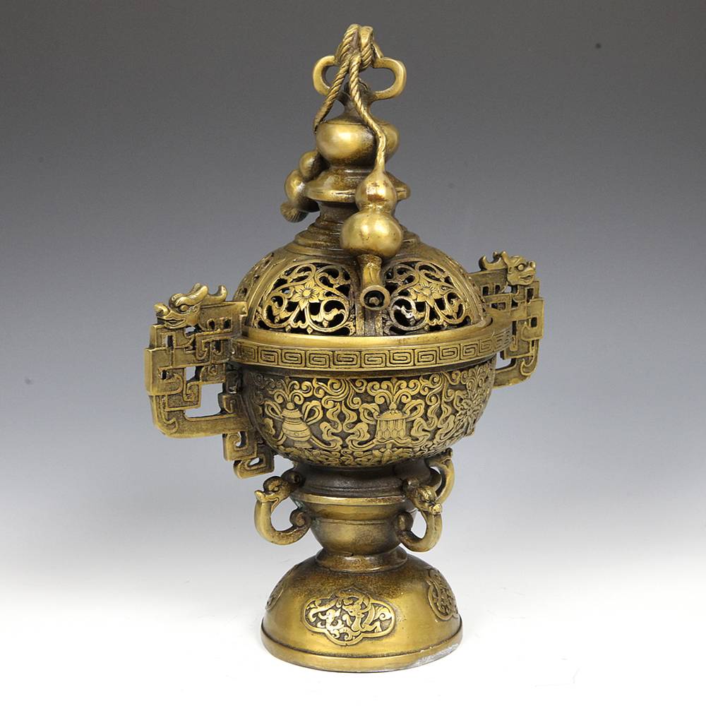 Censer with Dragon Handles, Ashtamangala Motif and Lid Decorated with Scholar's Gourds
