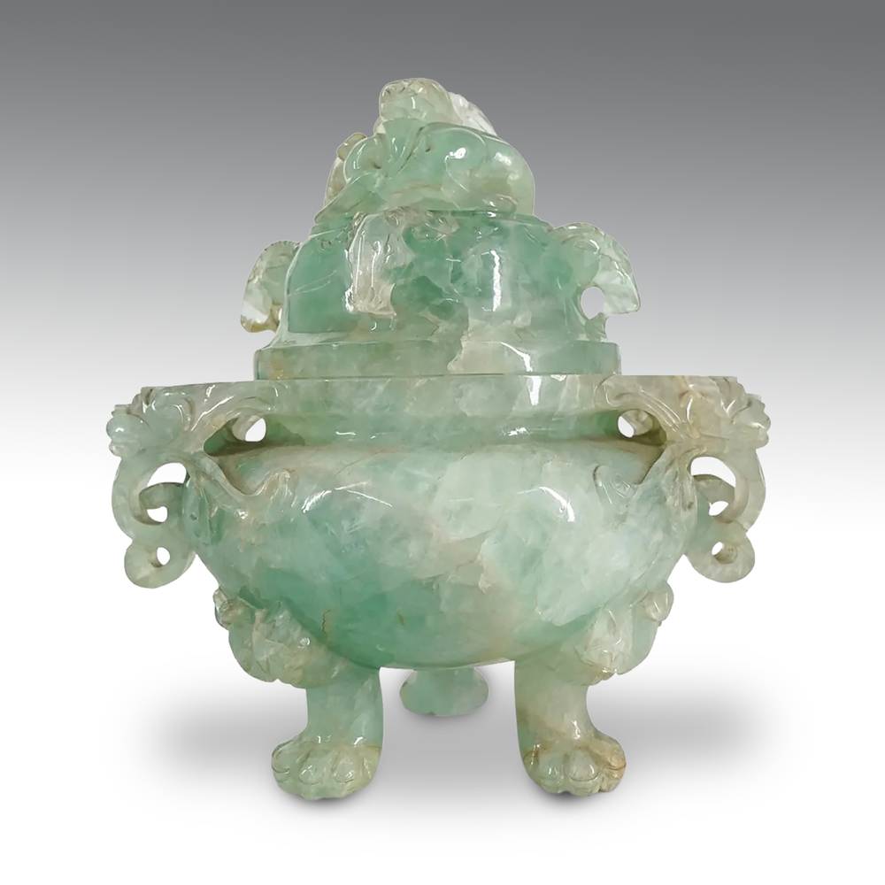 Lidded Urn with Paw Feet Featuring Ram's Heads & Chilong Finial
