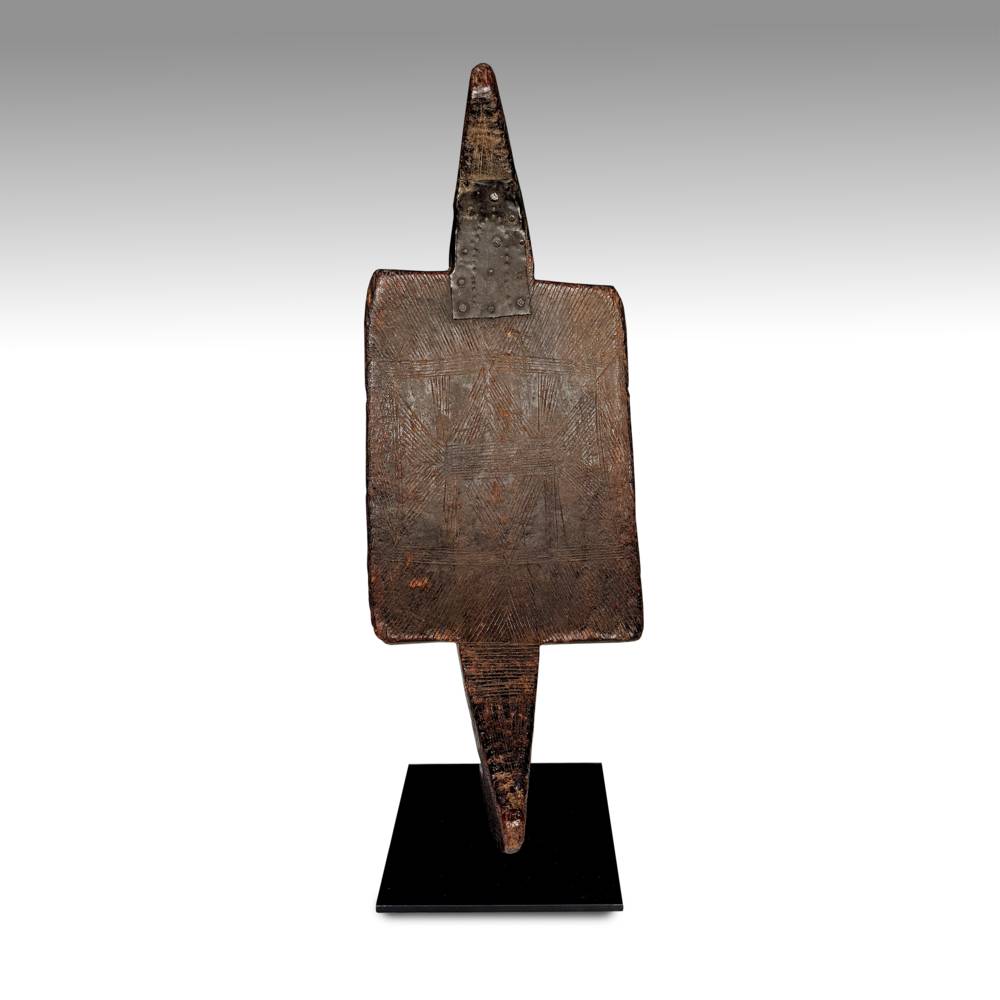 CARVED WOOD, REPAIRED WITH METAL PLATE