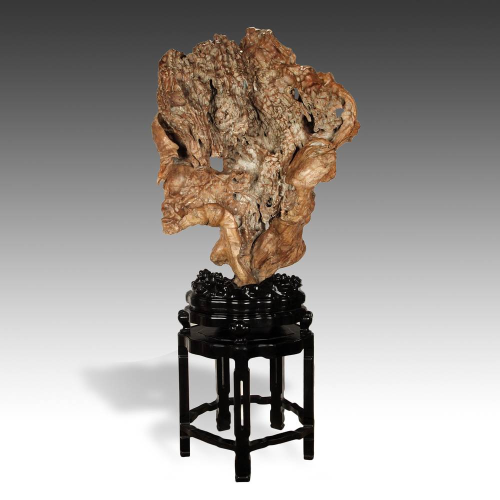 Mu Gongshi or Wood "Spirit Stone" on Huali Wood Stand