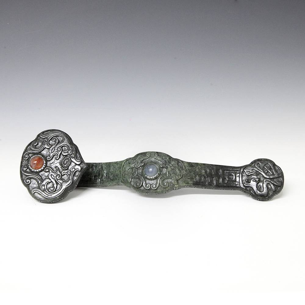 Ruyi Scepter with Semi-Precious Stone Cabochons and Long Life Character