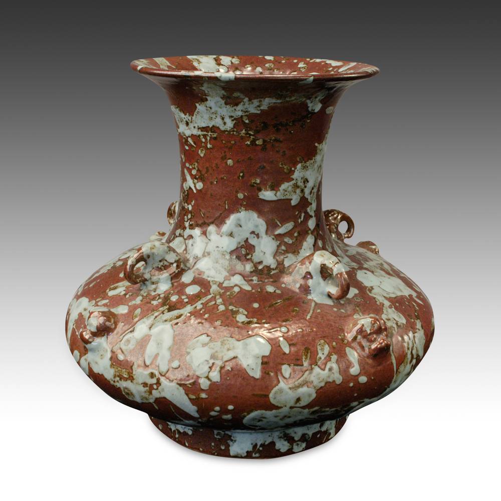 Vase with 4 Loop Elephant Style Handles and modeled foo lion decoration