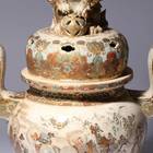 Monumental Satsuma Censer with Foo Dog Lid and Exceptional Painting