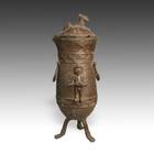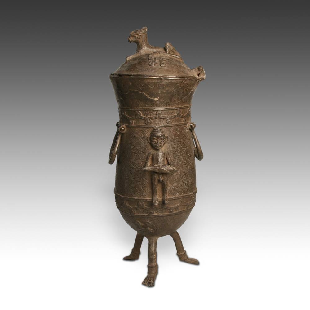 Lidded Ceremonial Vessel with Figures, on Three Legs
