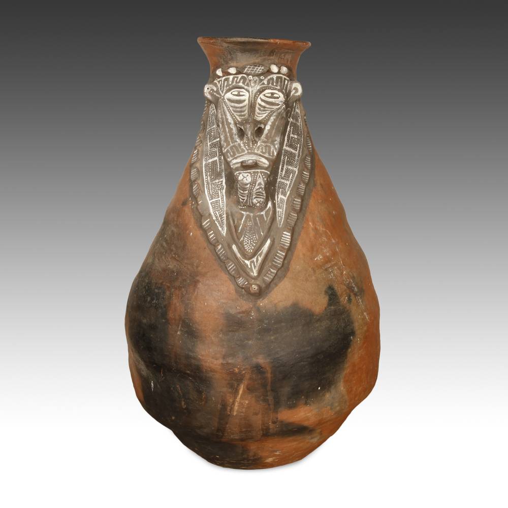 In Papua New Guinea, the land along the winding Sepik River is home to a number of tribes that produce some of the most magnificent artworks... <a href="/stories-descriptions/damarau-or-sago-storage-vessel">Read more</a>