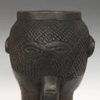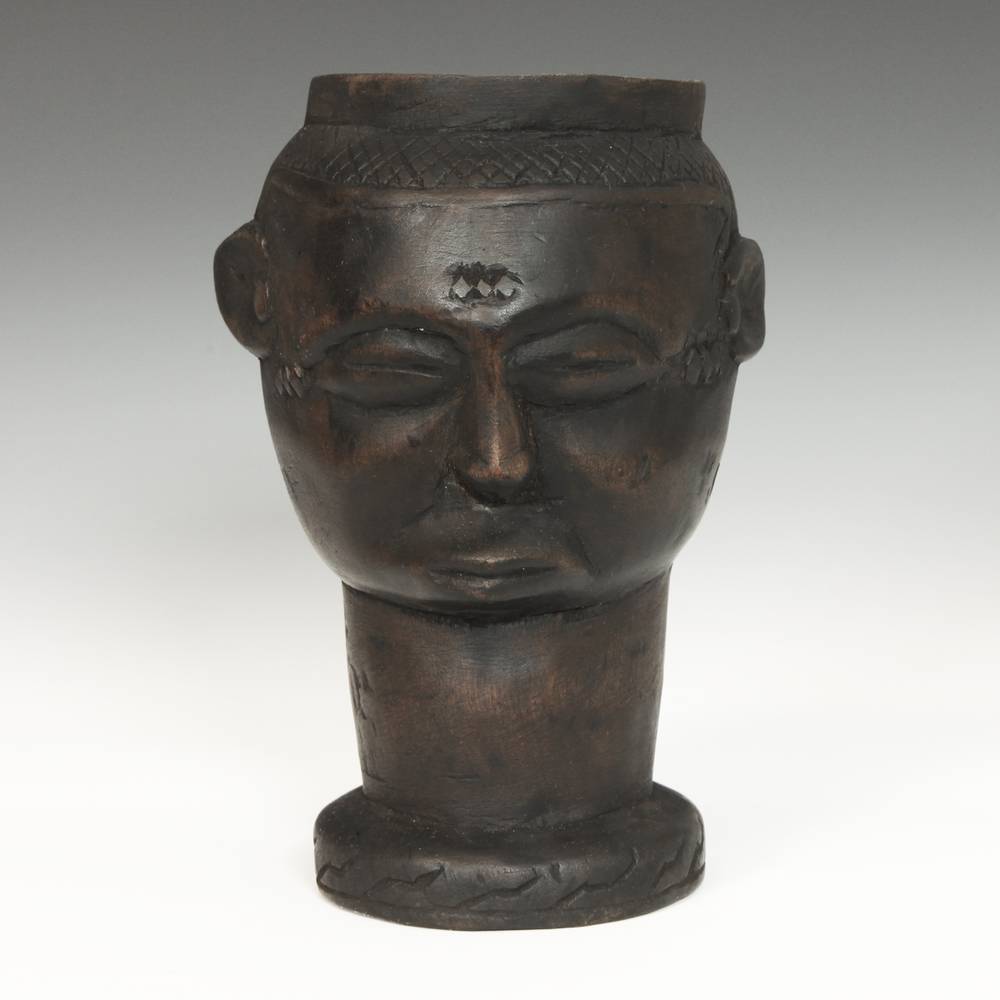 In the courts of the wealthy Kuba kingdom founded in the early 17th century in present day Democratic Republic of Congo, elaborately crafted drinking vessels held great symbolic value. Distributing large quantities of palm wine was a way of displaying wealth and generosity among titleholders and member of the aristocracy. These wooden libation cups were often carved with human and animals forms that communicated the ideals of refinement and power.