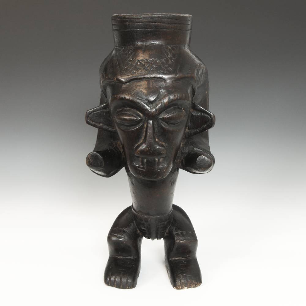 In the courts of the wealthy Kuba kingdom founded in the early 17th century in present day Democratic Republic of Congo, elaborately crafted drinking vessels held great symbolic value. Distributing large quantities of palm wine was a way of displaying wealth and generosity among titleholders and member of the aristocracy. These wooden libation cups were often carved with human and animals forms that communicated the ideals of refinement and power.