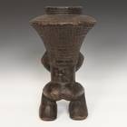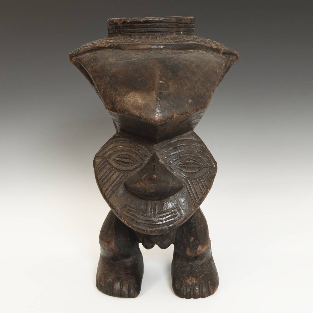In the courts of the wealthy Kuba kingdom founded in the early 17th century in present day Democratic Republic of Congo, elaborately crafted drinking vessels held great symbolic value. Distributing large quantities of palm wine was a way of displaying wealth and generosity among titleholders and member of the aristocracy. These wooden libation cups were often carved with human and animals forms that communicated the ideals of refinement and power.