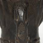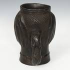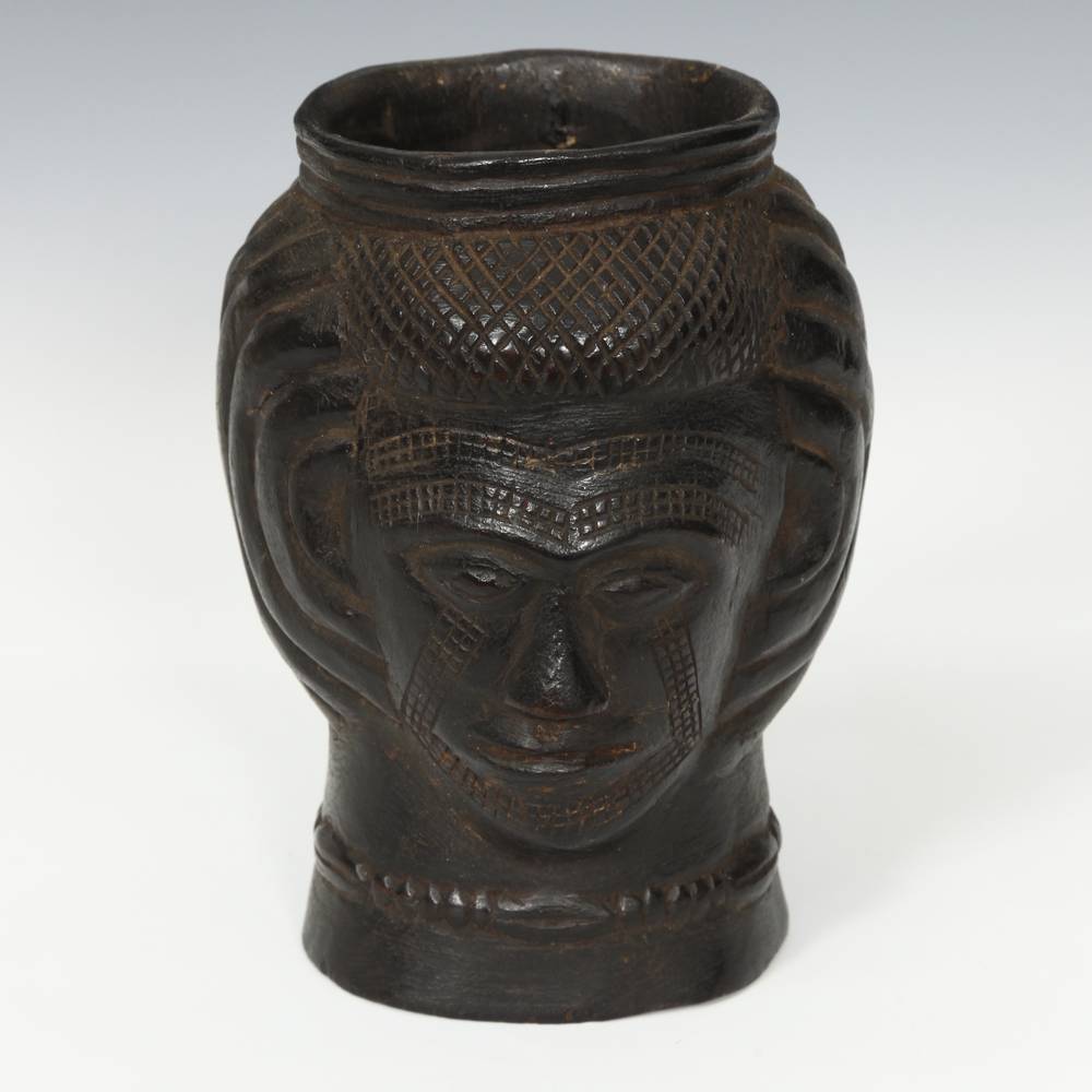 In the courts of the wealthy Kuba kingdom founded in the early 17th century in present day Democratic Republic of Congo, elaborately crafted drinking vessels held great symbolic value. Distributing large quantities of palm wine was a way of displaying wealth and generosity among titleholders and member of the aristocracy. These wooden libation cups were often carved with human and animals forms that communicated the ideals of refinement and power.