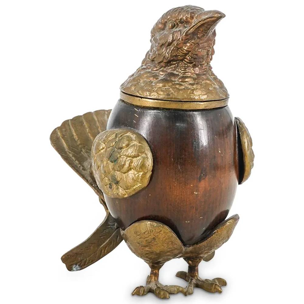 Carved Coconut & Gilt Bronze with Maker's Mark