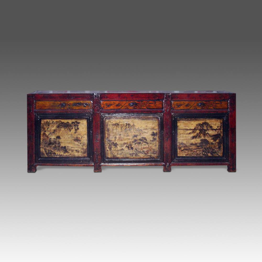 Coffer with 3 Drawers & 3 Doors; Landscape Motif