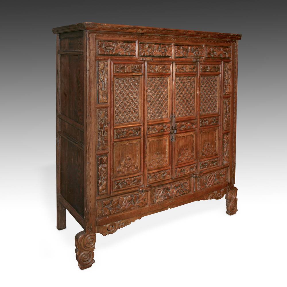 Cabinet; 2 Bi-Fold Doors with Ornate Lattice Carving