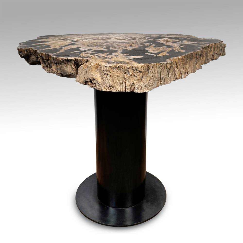 Irregular Petrified Wood Top with Custom Steel Base