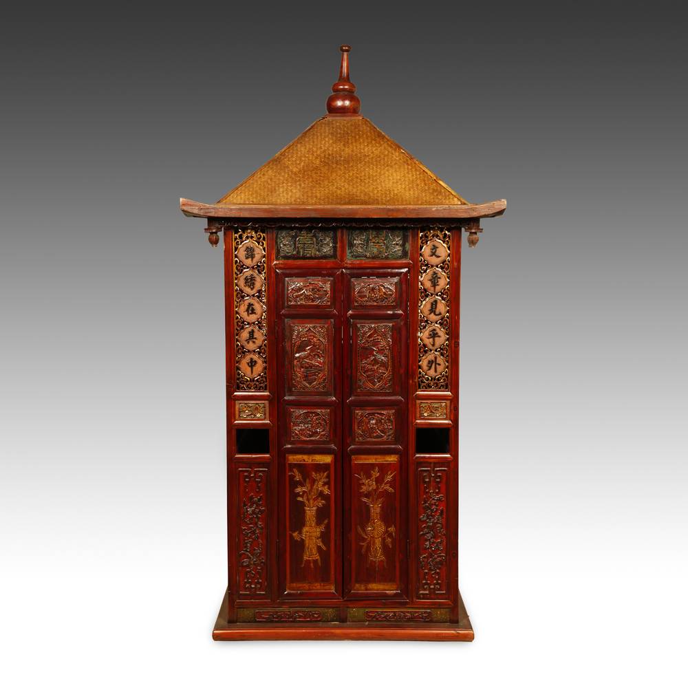 CARVED, LACQUERED & GILDED FIR WOOD 43'' L x 40'' D x 84'' H