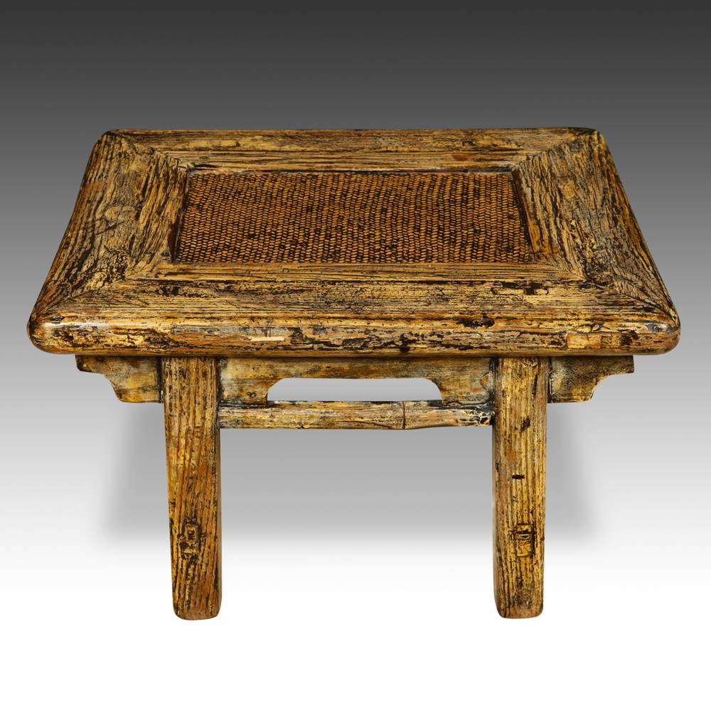 LACQUERED ELM WOOD & RATTAN 19'' L x 15'' D x 12'' H