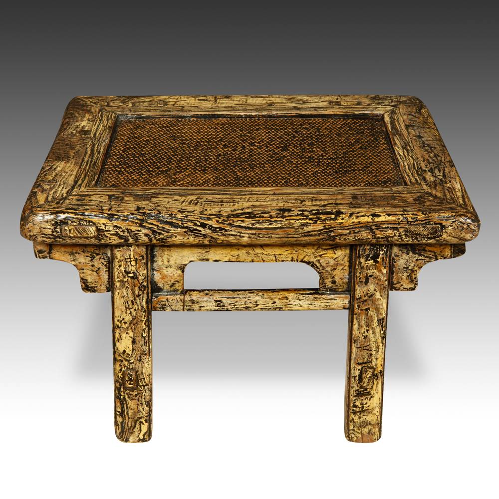 LACQUERED ELM WOOD & RATTAN 18'' L x 14'' D x 12'' H