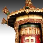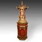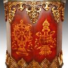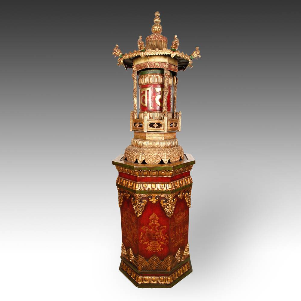 Pagoda-Form Prayer Wheel on Custom Ashtamangala Base