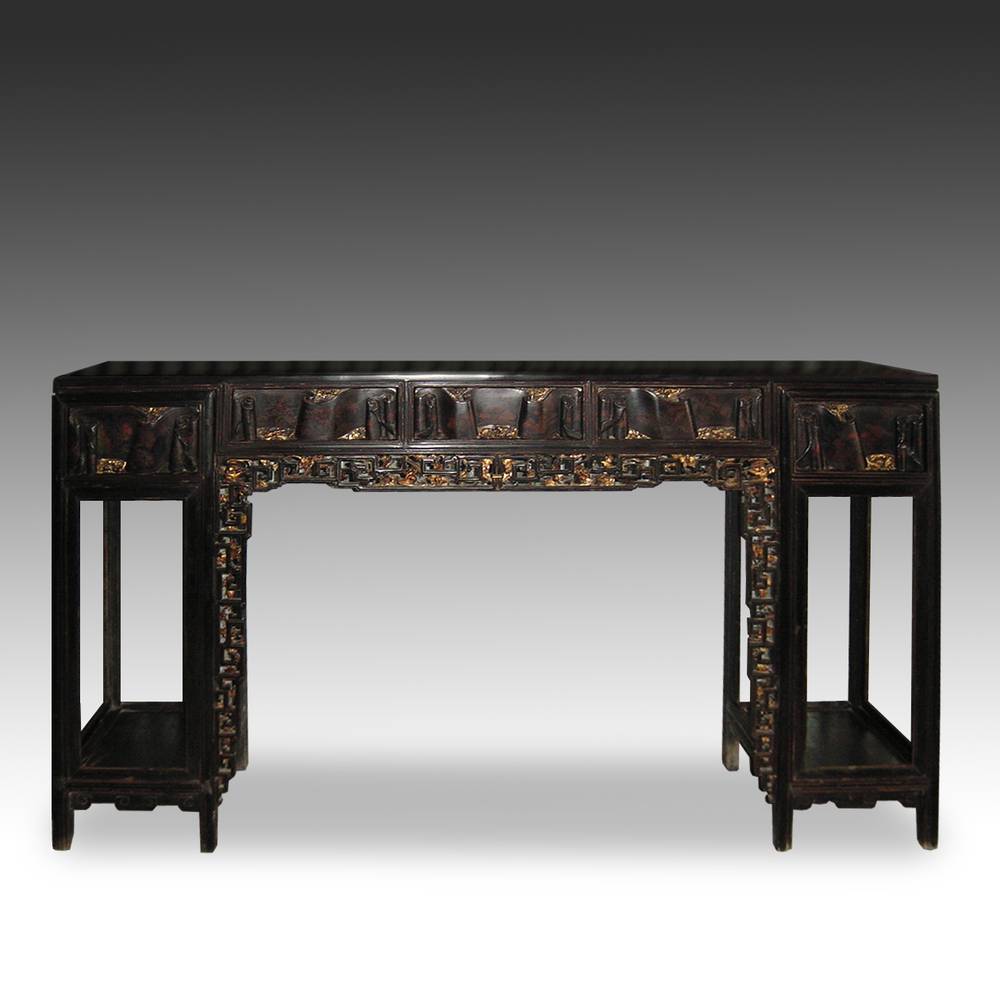 CARVED, LACQUERED, PAINTED & GILDED PINE WOOD 79.25'' L x 18.5'' D x 46.5'' H