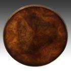 Parquetry work mahogany veneer top, pierced brass gallery rail; all atop cast iron base