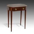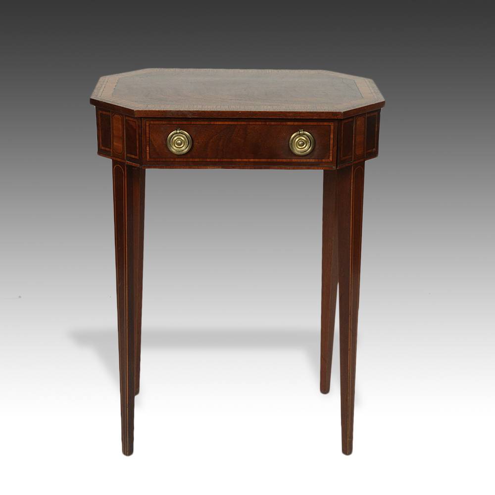Regency Style Side Table with Single Drawer, Marquetry Top and Brass Ring Pulls