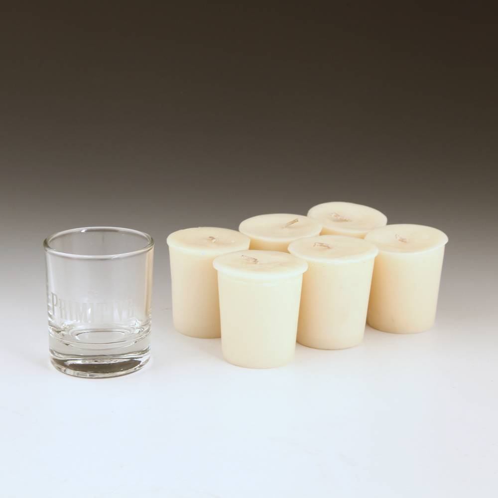Votive Set with Primitive Glass Logo | Ivory - Sandalwood Scent
