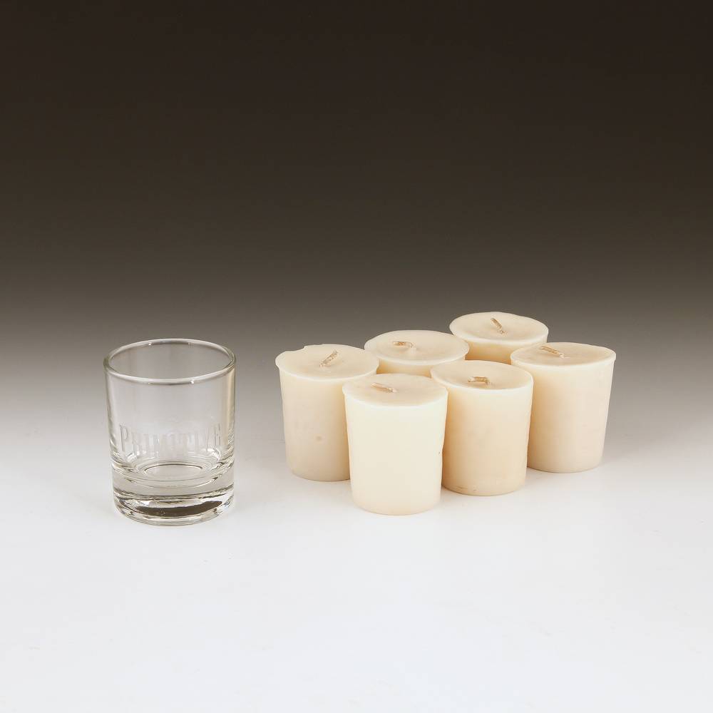 Votive Set with Primitive Glass Logo | Natural Ivory - Nag Champa Scent