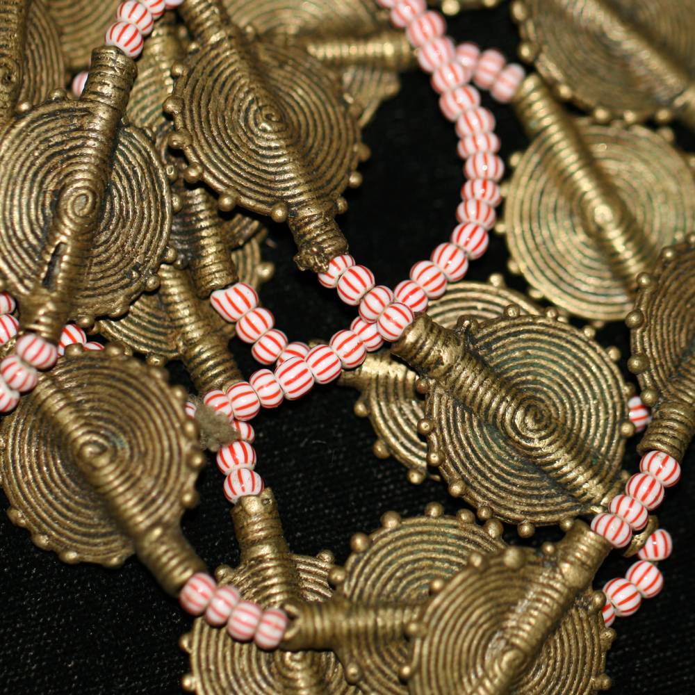 BRASS SPIRAL DISCS WITH PINK & WHITE GLASS