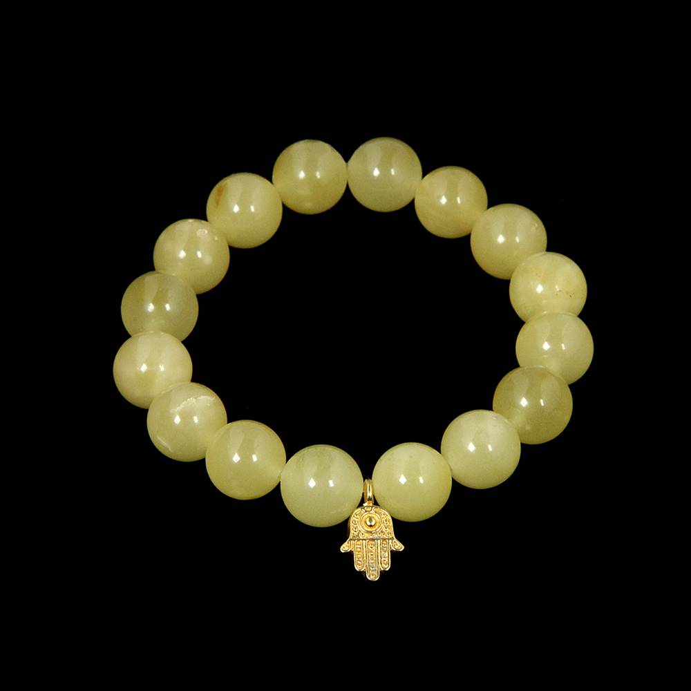 Bracelet - Amber with Hamsa Drop in Gold Wash